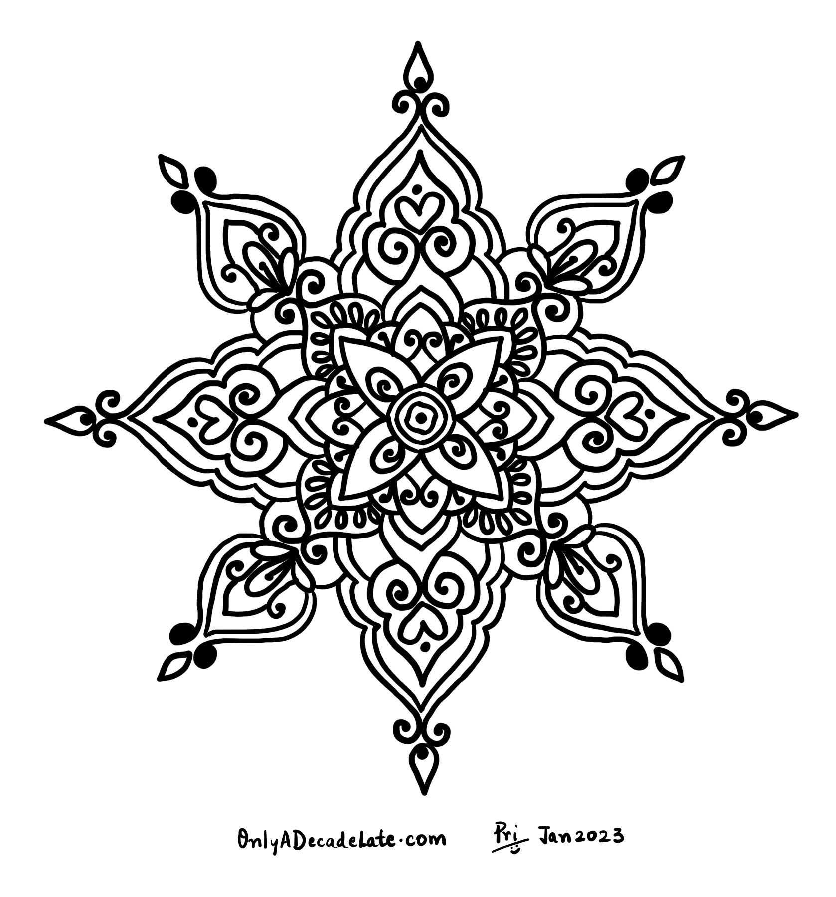 #OadlProject365 - Day 30 - Alpona30th Jan 2023Priyanka BanerjeeJan 31, 2023Share20 min of #procreate and the symmetry function got me this!Stay tuned for monthly recap tomorrow! Can’t believe we are 1/12th of the way there :)SubscribeSharePreviousNext