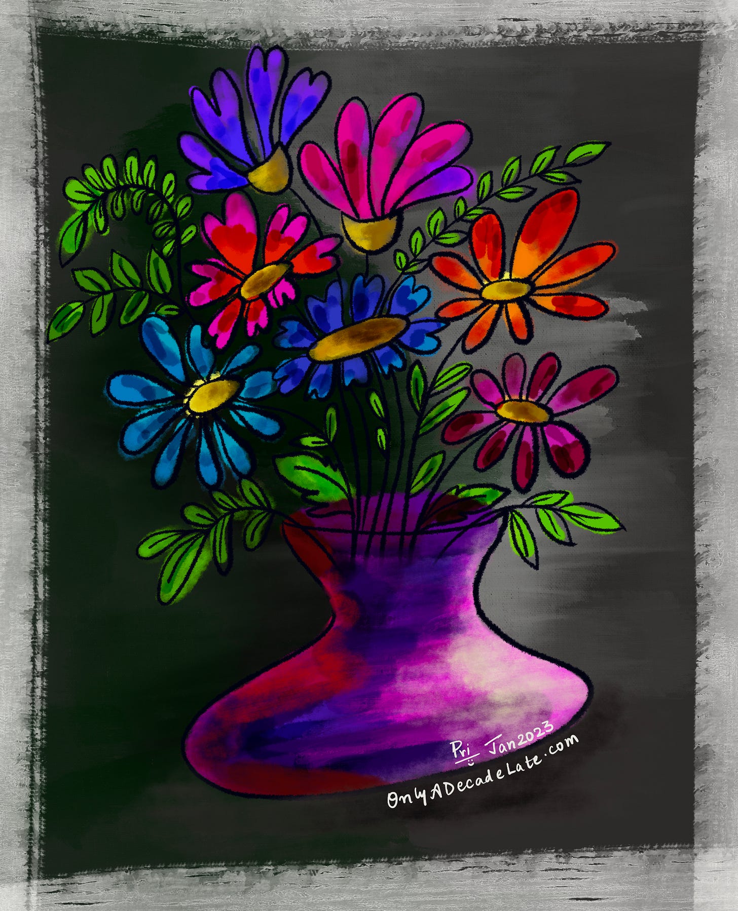 When you don’t know what to draw, draw flowers - lots of them in lots of different colors! Which means expect a LOT of flowers throughout this year. Happy Friday, see you all tomorrow :)